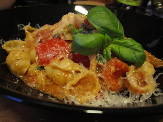 Ved servering røres kesam og hakket basilikum inn, sammen med den kokte gnocchien.